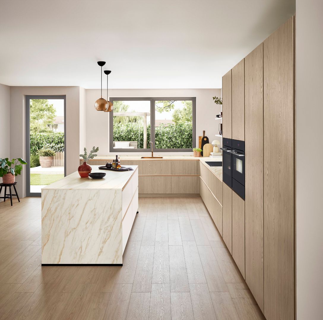 Holzoptiken sind die zentralen Elemente für die von der Natur inspirierten Küche VILLACH_WIEN von PAUL LEVÍN und schaffen Behaglichkeit, die zu jedem Einrichtungsstil passt. Materialien wie Marmor oder Granit bringen gemeinsam mit den facettenreichen Holzdekoren die Schönheit der Natur in Ihren Alltag.