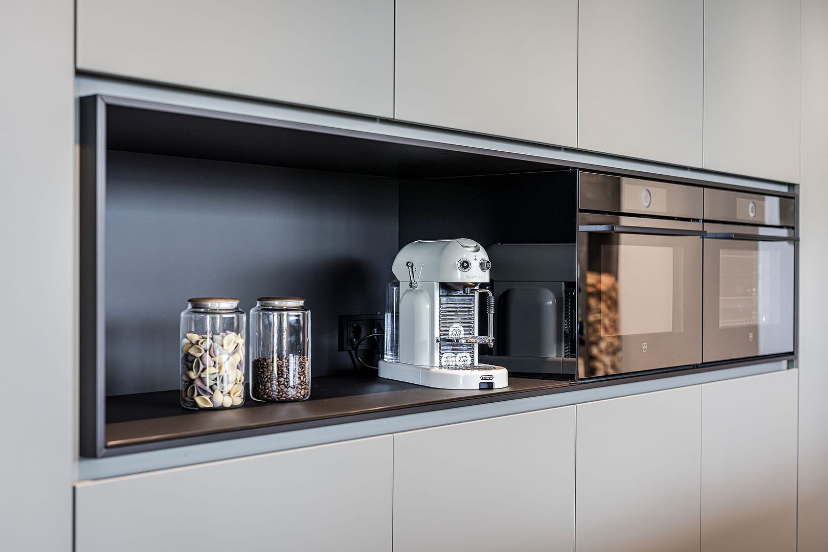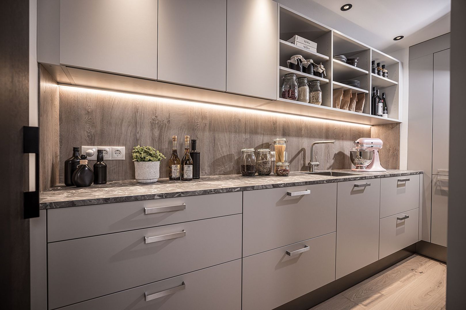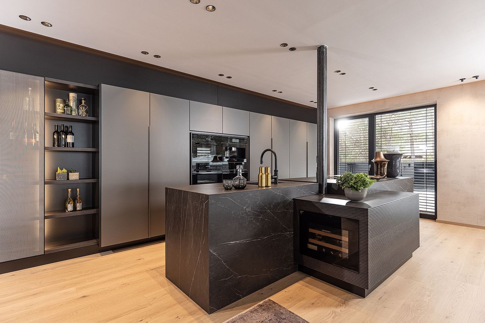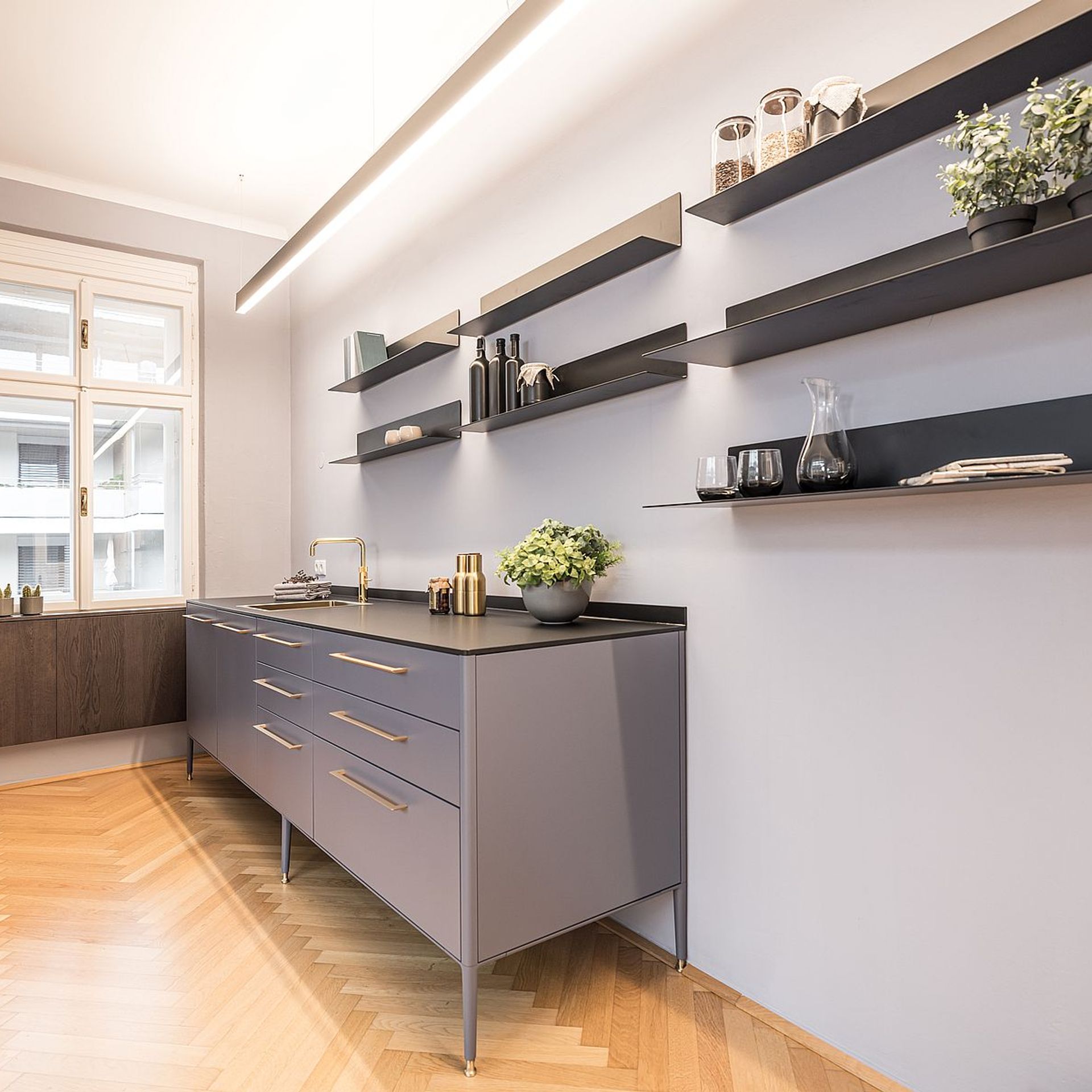 Bei diesem tollen Projekt haben wir eine gesamte Etage neu gestaltet. Die Küche, als Herzstück des Zuhauses, wurde am besten Platz geplant, raffinierte Details, wie die in die Wand integrierte Tür, schaffen eine elegante und fast unsichtbare Trennung zwischen Wohn- und Arbeitsbereichen. Werfen Sie einen Blick in die Bilder-Galerie und lassen Sie sich inspirieren!