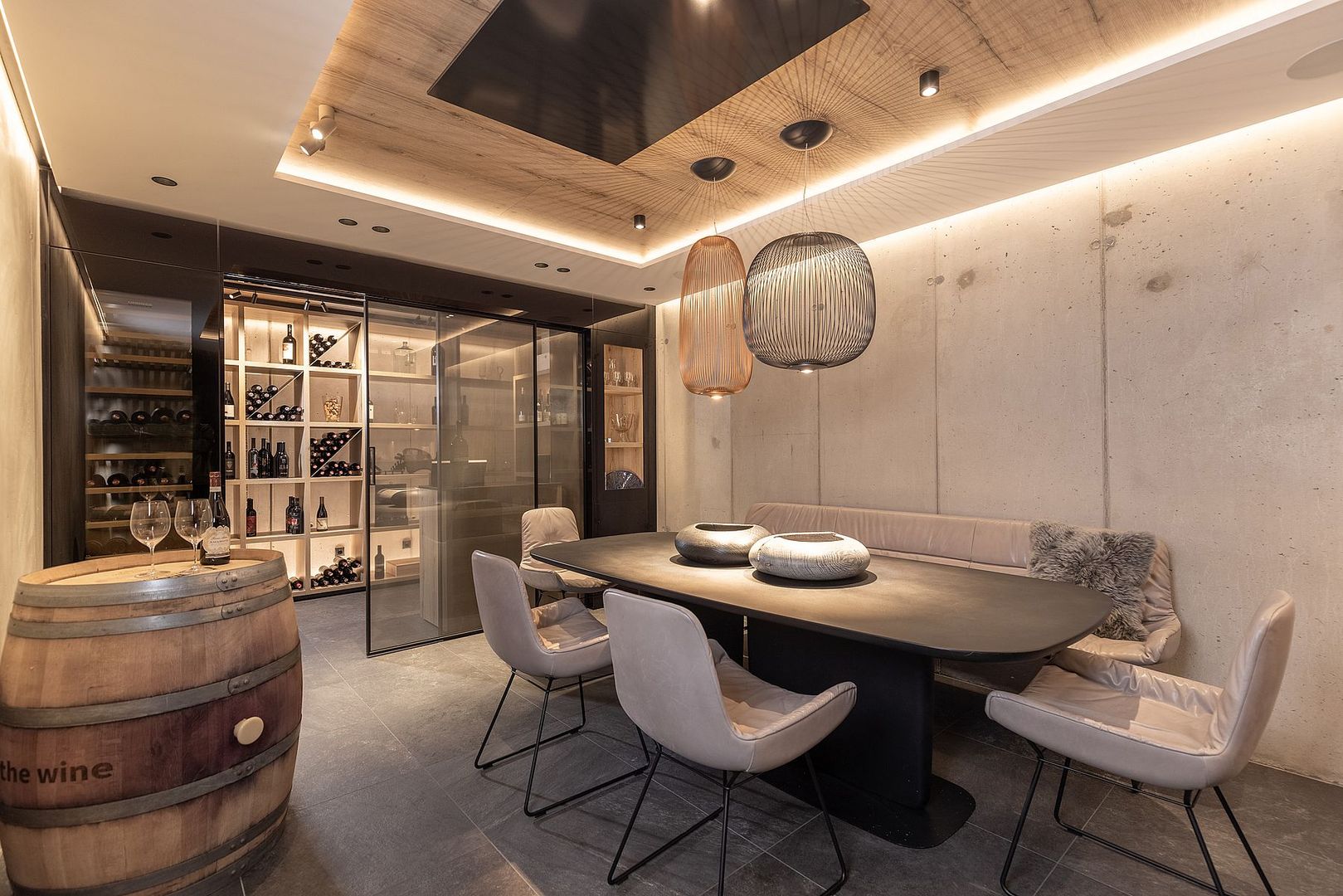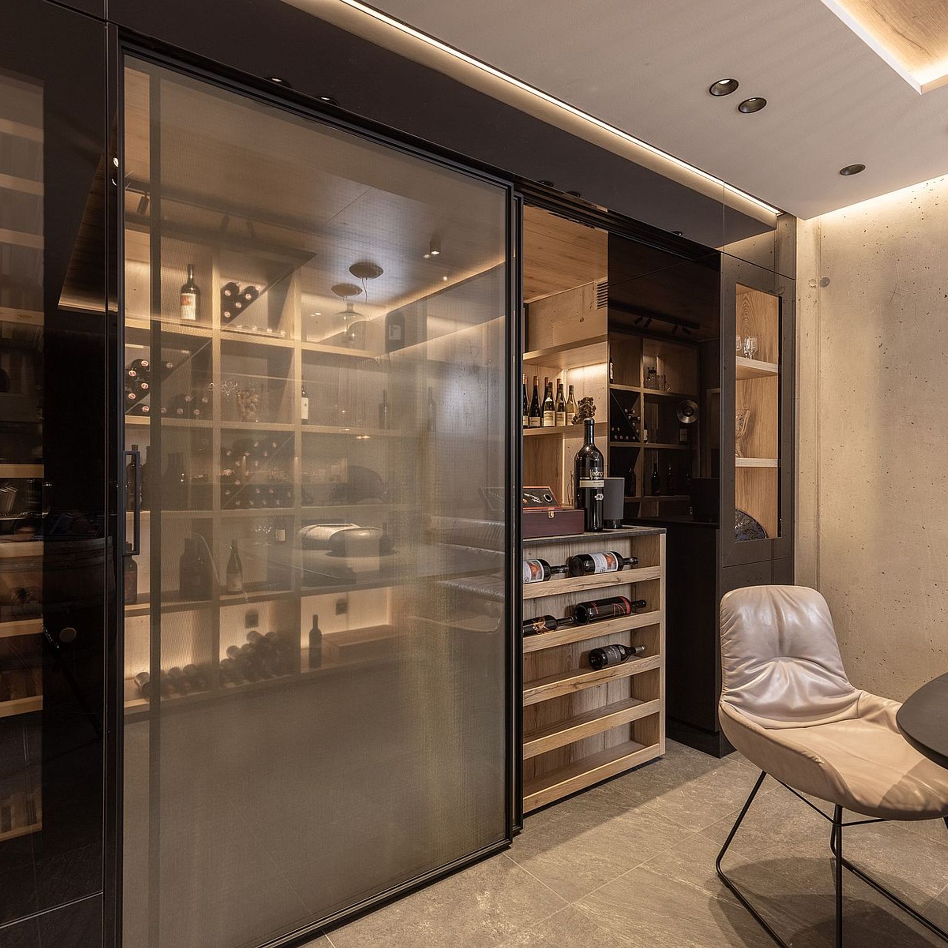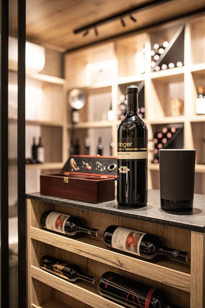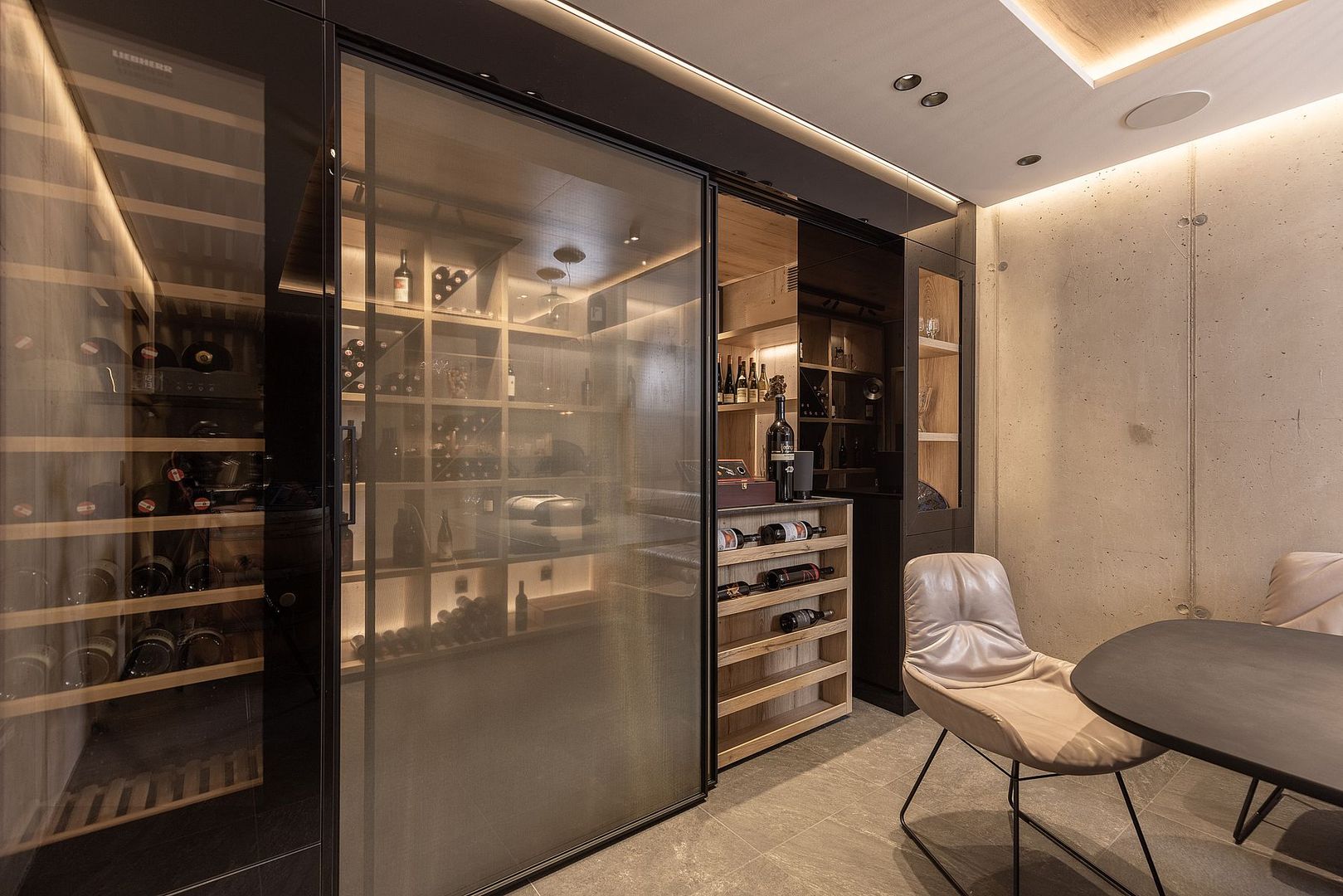 Lassen Sie sich von der einzigartigen Ästhetik dieses modernen Weinkellers inspirieren – Genuss in jeder Hinsicht!