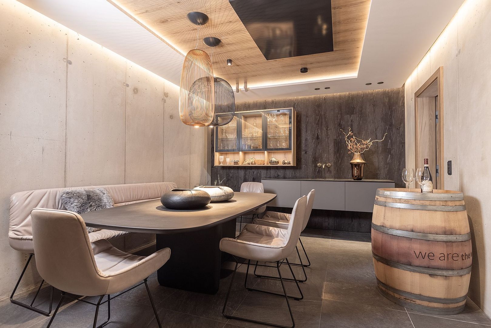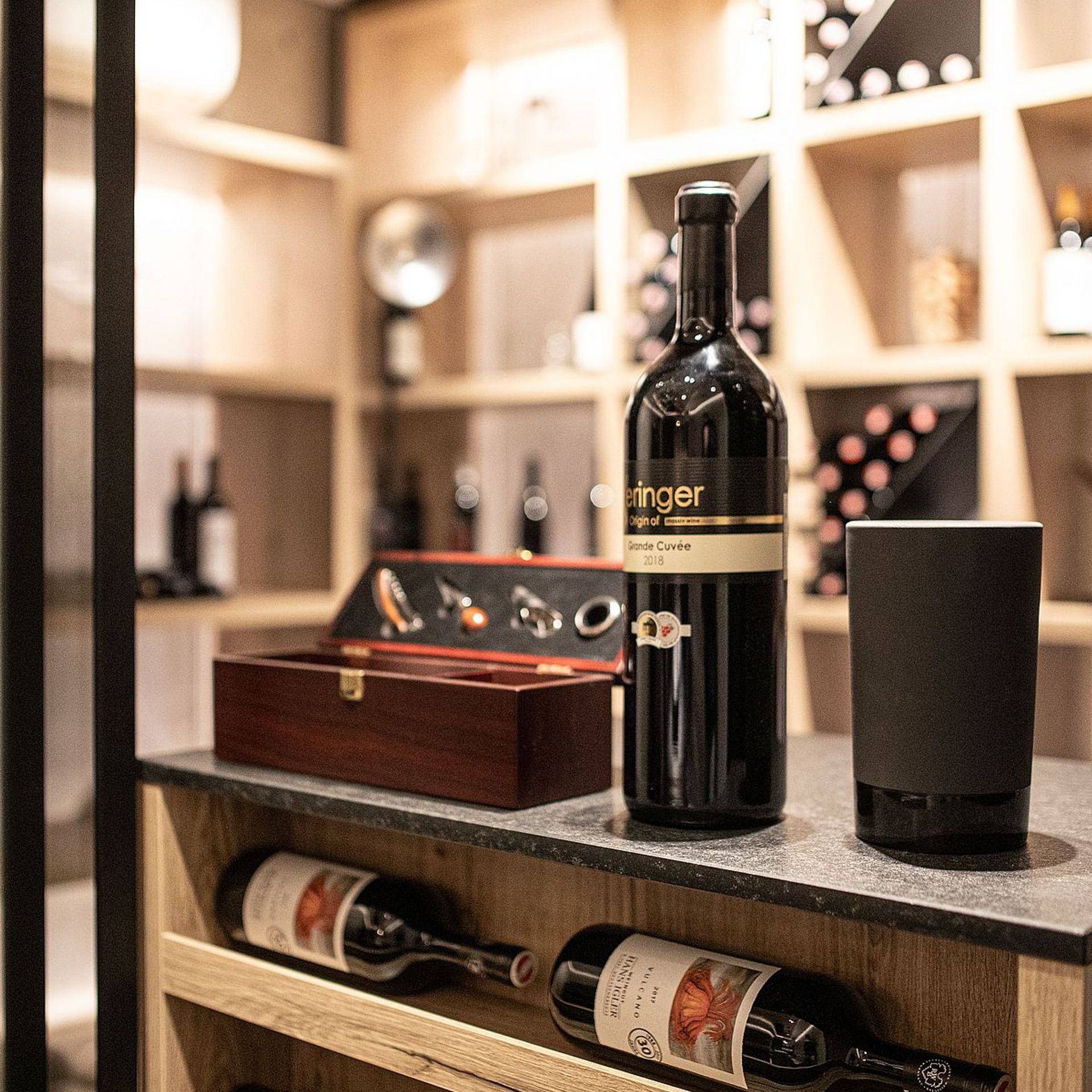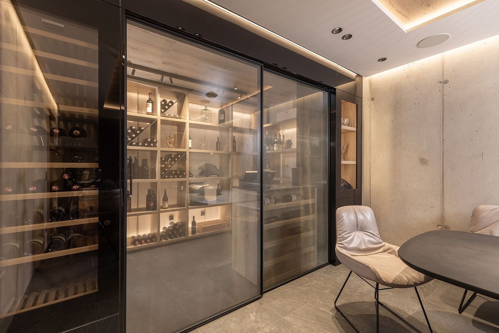 Lassen Sie sich von der einzigartigen Ästhetik dieses modernen Weinkellers inspirieren – Genuss in jeder Hinsicht!