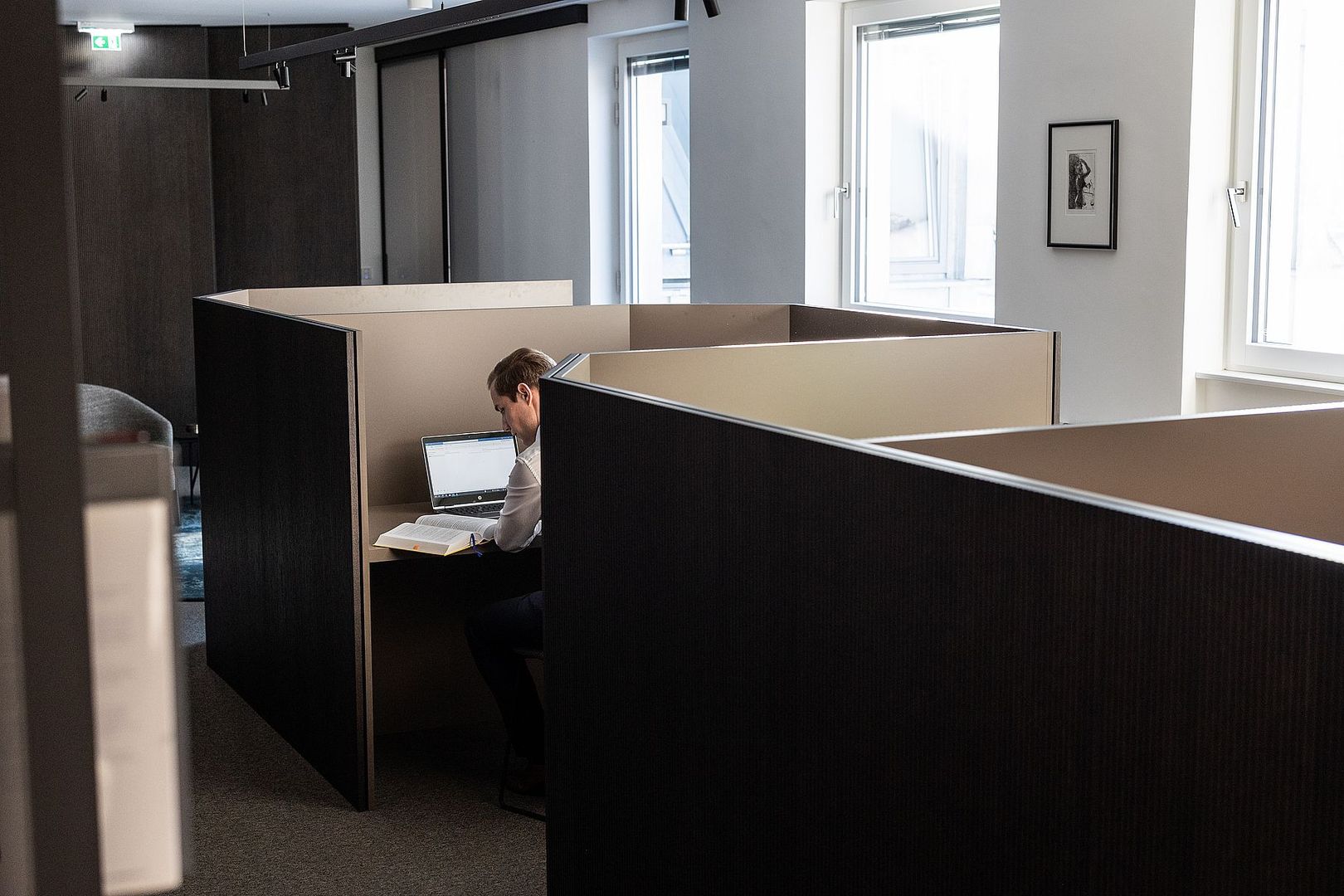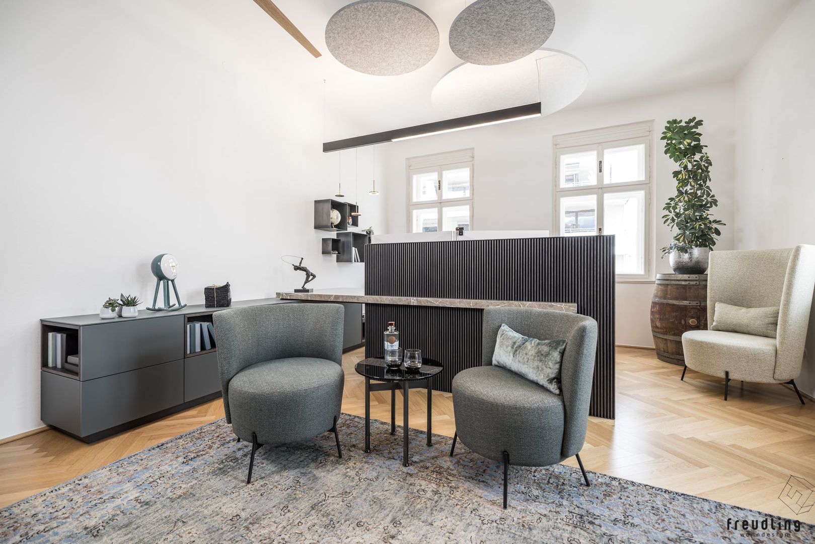 In dieser Rechtsanwaltskanzlei haben wir ein stimmiges Gesamtkonzept entwickelt, das Ästhetik und Funktionalität vereint. Der Eingangsbereich beeindruckt mit Holzlamellen, die funktionale Räume kaschieren, während flexible Paneele und praktische Bürokojen den Mitarbeiter*innen beste Arbeitsbedingungen bieten. Eine innovative Glastür sorgt für Licht und diskrete Privatsphäre. Entdecken Sie die Details in den Bildern!