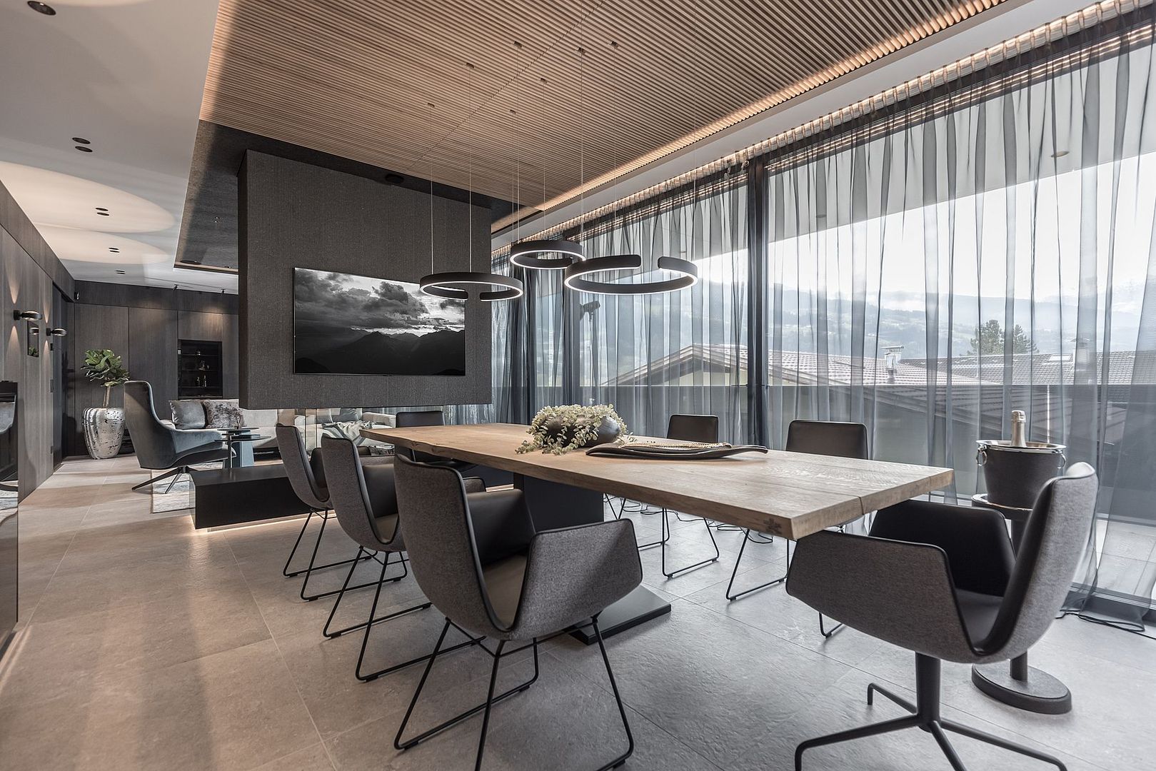 Ein stilvolles Ambiente, edle Materialien und eine durchdachte Raumgestaltung machen dieses Penthouse zu etwas ganz Besonderem. Entdecken Sie die perfekte Harmonie aus Design, Funktionalität und exklusiver Lichtinszenierung. Tauchen Sie ein in die exklusive Atmosphäre des Penthouse Landeck!