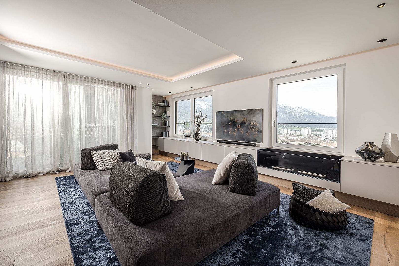 Willkommen in „Cloud Nr. 9“, einem außergewöhnlichen Wohnprojekt mit Panorama-Außenverglasung in Innsbruck! Hier haben wir die Möblierung so gestaltet, dass sie nach innen ausgerichtet ist, um den atemberaubenden Blick auf die Innsbrucker Berge zu bewahren. Entdecken Sie die Details in unserer Fotogalerie!