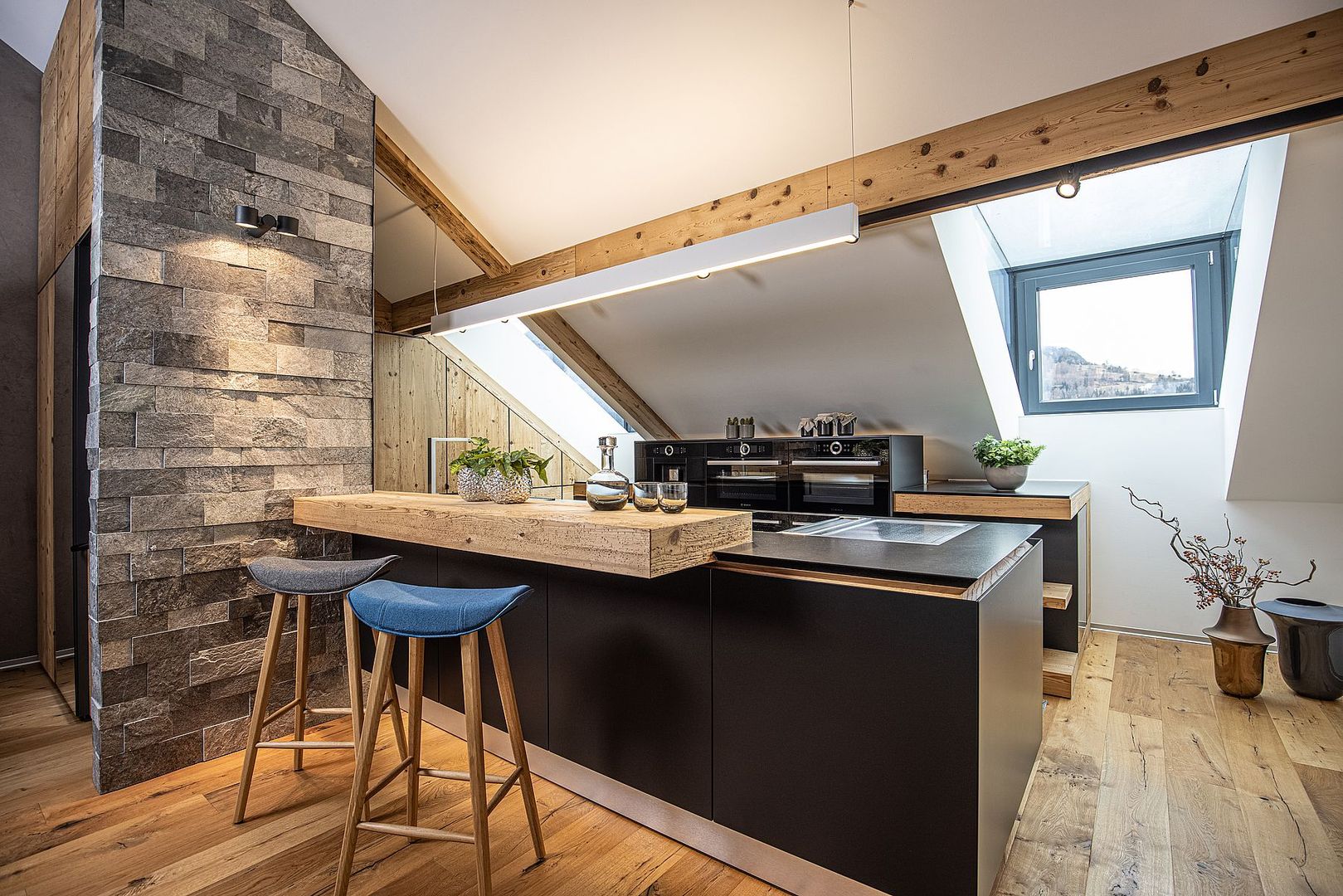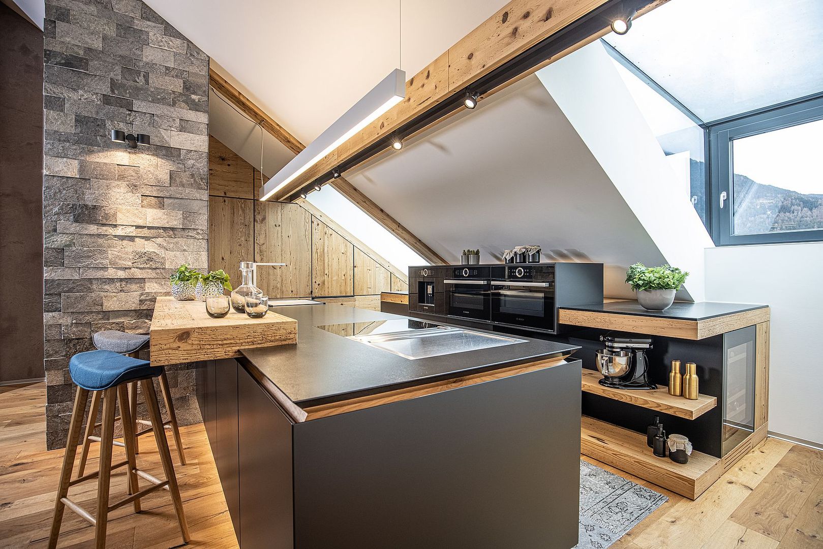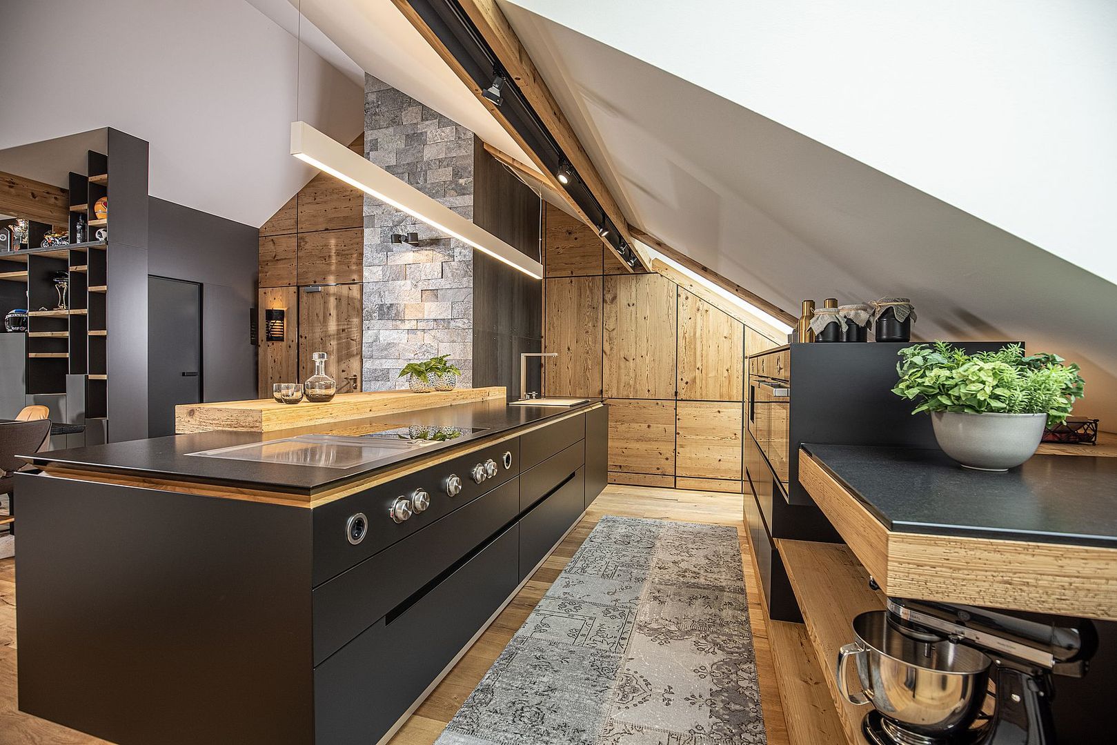 Bei diesem tollen Projekt haben wir eine gesamte Etage neu gestaltet. Die Küche, als Herzstück des Zuhauses, wurde am besten Platz geplant, raffinierte Details, wie die in die Wand integrierte Tür, schaffen eine elegante und fast unsichtbare Trennung zwischen Wohn- und Arbeitsbereichen. Werfen Sie einen Blick in die Bilder-Galerie und lassen Sie sich inspirieren!