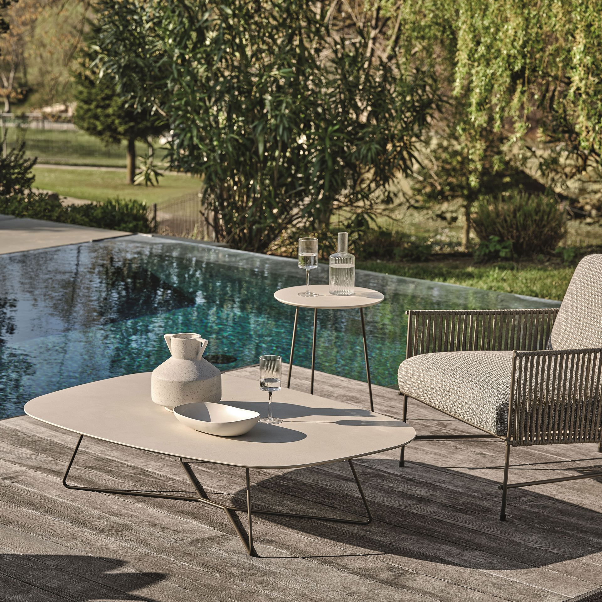 Der aktuelle Outdoor-Wohnstil spielt sich rund um natürliche Materialien ab. Echtheit, Nachhaltigkeit und Natürlichkeit stehen deshalb auch im Mittelunkt der Outdoor-Wohnkollektionen. Dazu passendes erdiges Beige, Braun und frisches Grün unterstützen diesen authentischen Stil. Doch nicht nur im Möbelsegment sind natürliche Materialien stark im Kommen: Ob Pflanztöpfe im rauen Natursteindesign, Teppiche in Jute-Optik oder Sonnenschirmständer in Holzoptik – die Natur findet sich auch mehr und mehr in Outdoor-Accessoires wieder.