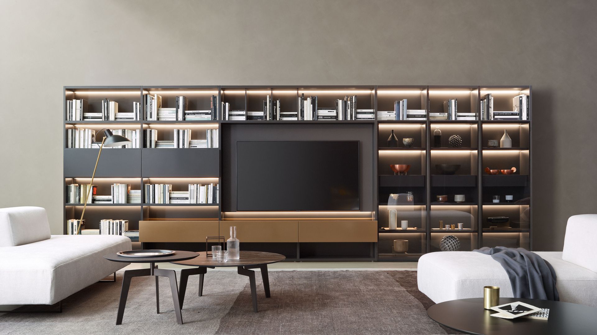 Wohnlandschaften hier, hochbeinige und grazile Sofas als Blickfang da. Auch das Auge wohnt mit. Deshalb schaffen zwischendurch oft schwarze, aber auch glänzend silberne oder farbig lackierte Metallgestelle farbige und designtechnische Kontraste – und wirken dadurch platzsparend und dennoch sehr elegant.
